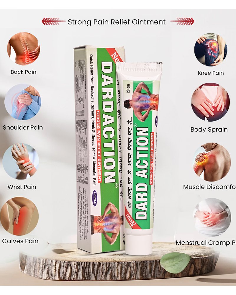 Dardaction is a strong pain relief ointment that helps with Back pain, Shoulder pain, Wrist pain, Calf pain, Knee pain, Body sprains, Menstrual Cramps, and Muscle Discomfort.