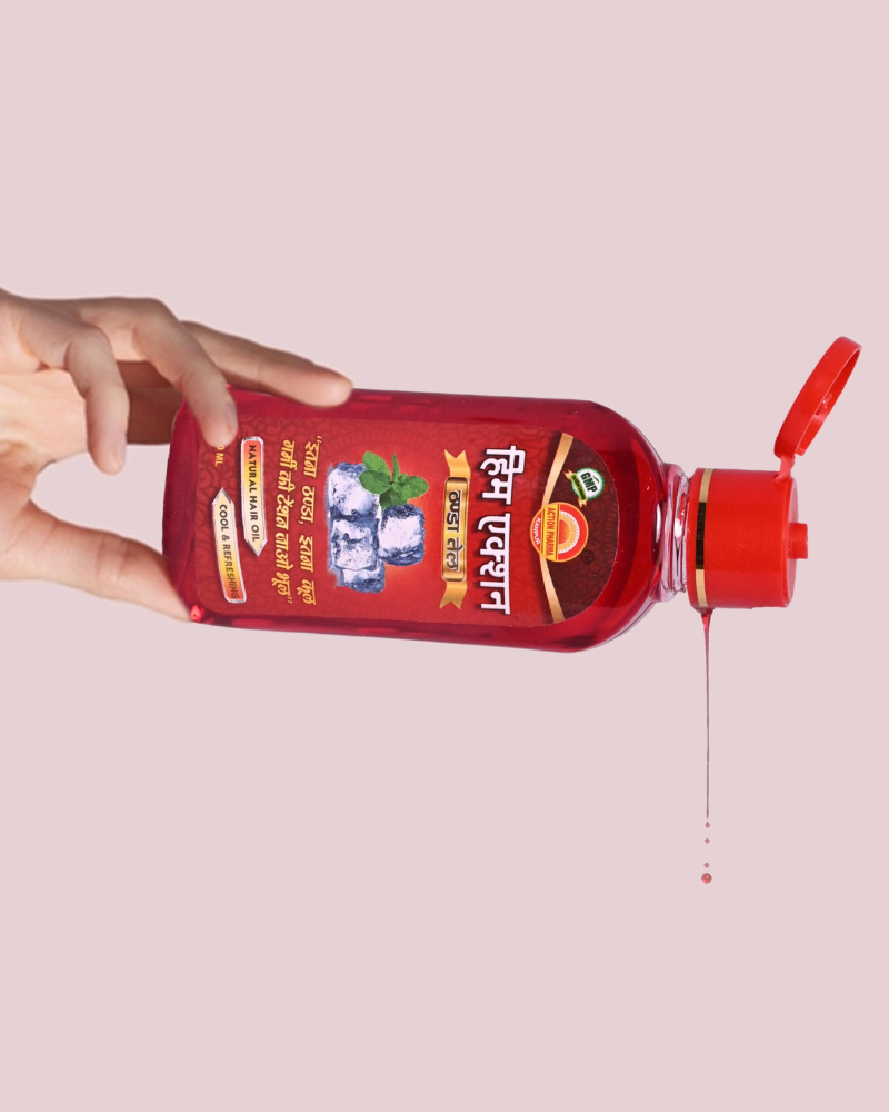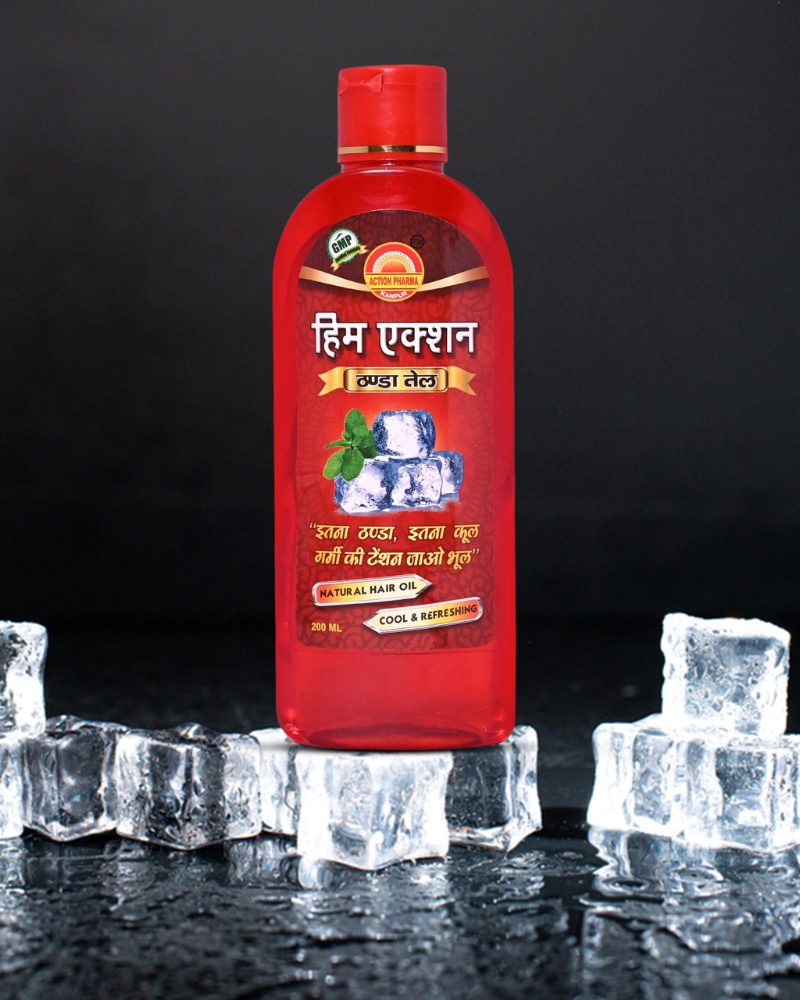 Experience cooling relief with Him Action Thanda Oil. This unique oil is formulated with a blend of active ingredients like Rattan Jot, Kapoor, Champa, Brahmi, aavla, peppermint, and more.It provides a cooling effect that soothes headaches, tension, and stress and promotes healthy hair. Say goodbye to discomfort and embrace the rejuvenating power of Him Action Thanda Oil. Indulge in a refreshing and calming experience for your head and hair
