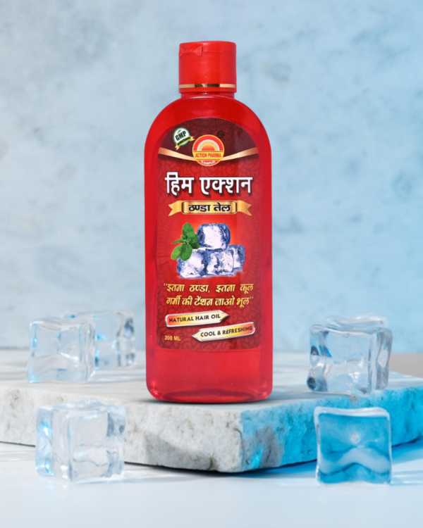 Head Relief: Him Action Thanda Oil’s cooling effect instantly calms and relaxes your mind, easing away the discomfort caused by headaches, migraines, and tension. The cooling sensation penetrates deep into the scalp, alleviating pain and promoting a sense of tranquility.