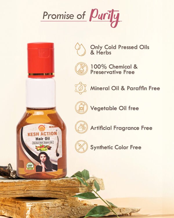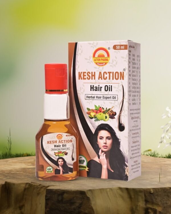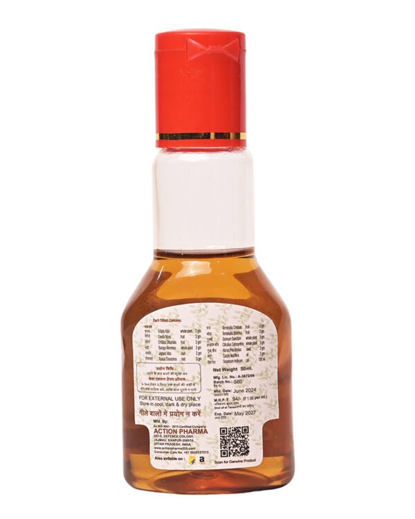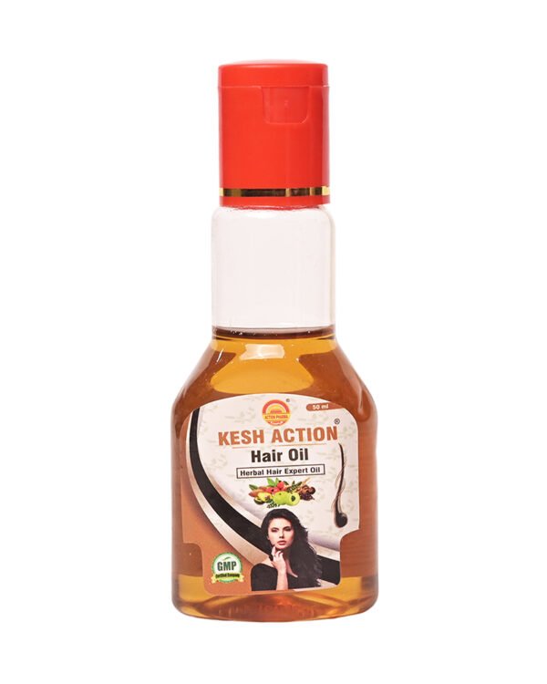 Discover the natural solution to achieve luscious and healthy hair with Kesh Action Hair Oil. Enriched with a blend of all-natural ingredients like Akhrot, Brahmi, Shikakai, Harad, Anvla, Tulsi, Kapoor, Til Ka Tel, Bhringraj, and more.