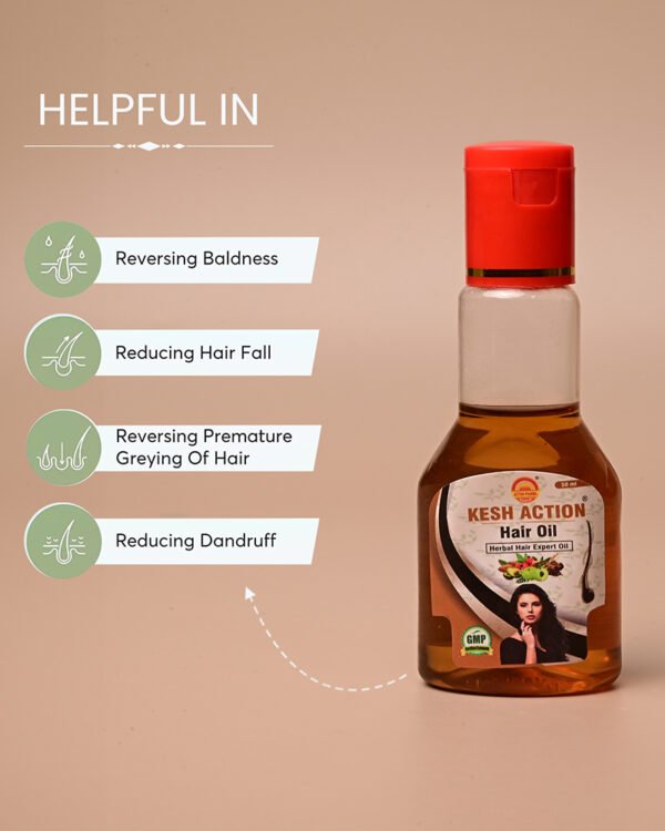 Hair Loss Prevention: Say goodbye to hair loss and hello to stronger, healthier hair with Kesh Action Hair Oil. Its potent combination of natural ingredients, including Akhrot and Bhringraj, helps nourish the scalp and strengthens hair follicles, reducing hair fall and promoting hair growth.